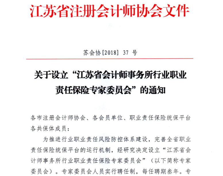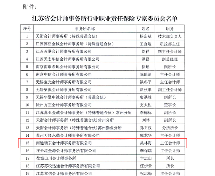 我所吳林海入選江蘇省會計師事務所行業(yè)職業(yè)責任保險專家委員會